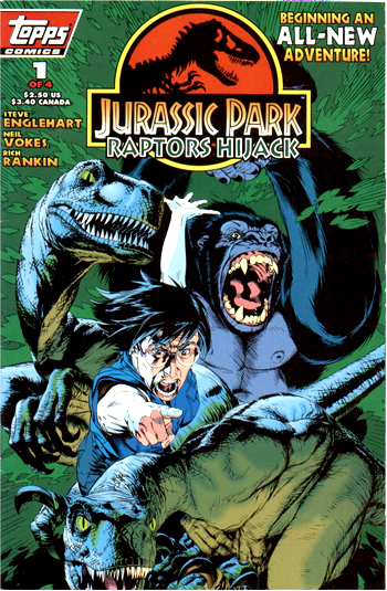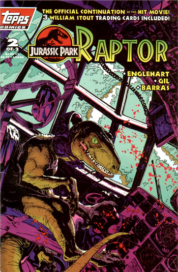 Derrière la dénomination Jurassic Park Raptors se cachent trois séries distinctes titrées Raptor, Raptors Attack et Raptors Hijack, composées respectivement de deux, quatre et quatre numéros, parus entre novembre 1993 et octobre 1994. Les fascicules ont été réédités quelques mois plus tard sous le titre générique de Jurassic Park Adventures #1-10, puis une nouvelle fois en 2010 (lorsque la licence est passée de Topps à IDW) au format "paperback" relié, sous le titre Classic Jurassic Park Volume 2 & 3.