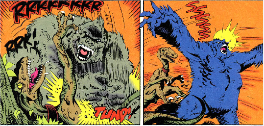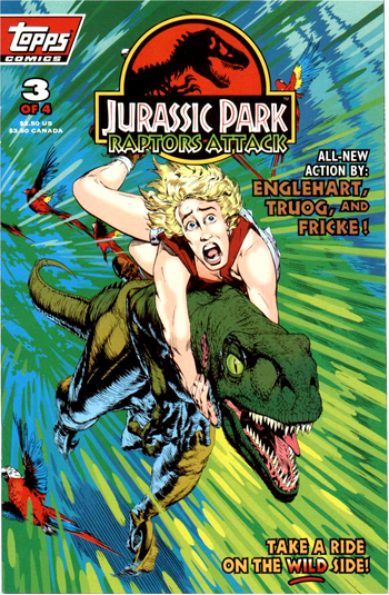 #3 Grant et Ellie retrouvent Malcolm et Muldoon. Ce dernier leur apprend que le chasseur qui les a pris en otage est son ancien "frère d'arme" de l'époque où il était au Kenya. Il met un point d'honneur à retrouver les dinosaures évadés. Dans la jungle les trois raptors semblent touchés par un virus qui les affaiblit. Ils sont soignés par une tribu d'indigènes qui les prend pour des divinités. Une fois remis sur pattes, les animaux massacrent la tribu.